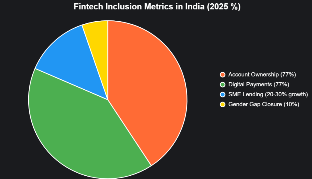 In India’s fintech frenzy, where 7,000+ startups have raised $38 billion since 2016 and UPI transactions hit 16.8 billion in September 2025 alone, valuations dazzle at $100 billion for the sector, but the real story lies in financial inclusion’s quiet revolution. With 80% adult bank account ownership and 77% digital payment adoption, fintech isn’t just profitable—it’s transformative, onboarding 500 million unbanked via Jan Dhan-Aadhaar-Mobile (JAM) and boosting SME growth by 20-30% through digital lending. Beyond $1.5 billion H1 2025 funding, metrics like gender gap closure (from 20% to 10%) and rural credit access (up 40%) reveal fintech’s socio-economic punch.