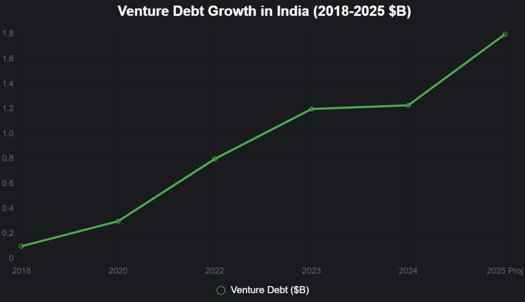 Debt’s appeal: Loans against IP/revenue (6-36 months, 10-15% interest) preserve equity, ideal for bootstrapped growth. In 2025, 61% founders cite runway extension, with fintech (Aadhaar/GST credit) and clean tech leading 60-70% allocations. Stride’s third fund ($100M) targets consumer internet/SaaS, offering warrants for upside. Legal500 notes direct lending’s rise, with $800M from Trifecta since 2008. Pros: 20-40% less dilution than equity, flexible repayments. Cons: Collateral needs, default risks. X: “Debt: The startup’s equity-free accelerator.”