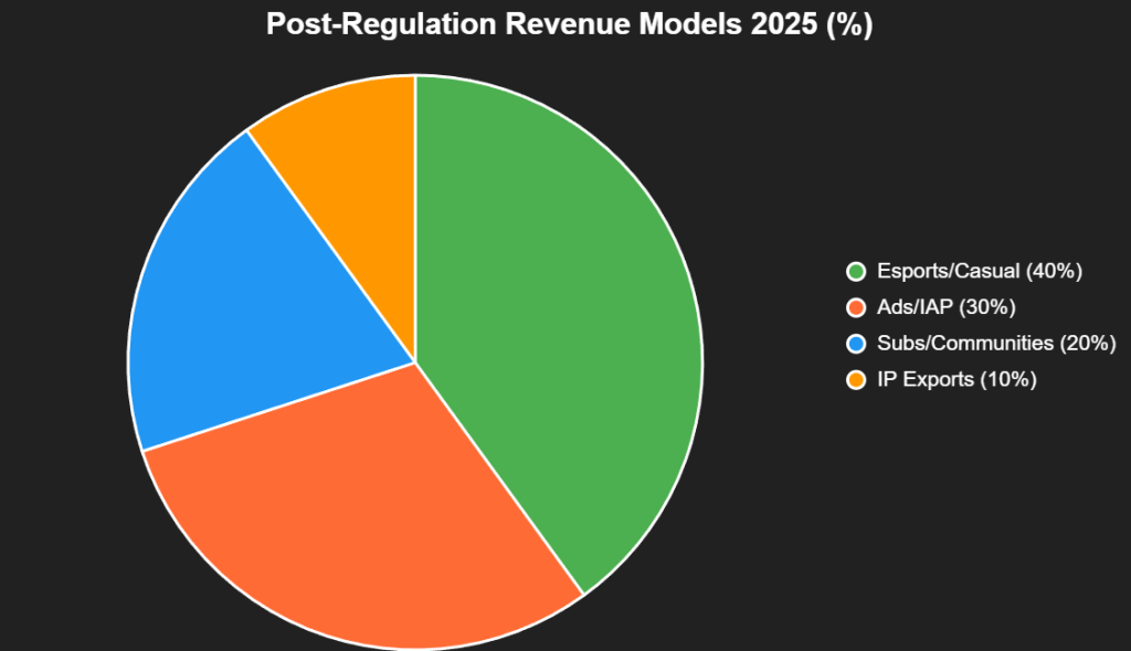 Post-reg: Esports/casual evade RMG bans (recognized “sport”), IAP/ads stable (Unity revenue up 20%). Creators’ subs/communities cut ad reliance (fluctuations 20-30%). X: “Pivots working: Legit esports, direct fan $$.”